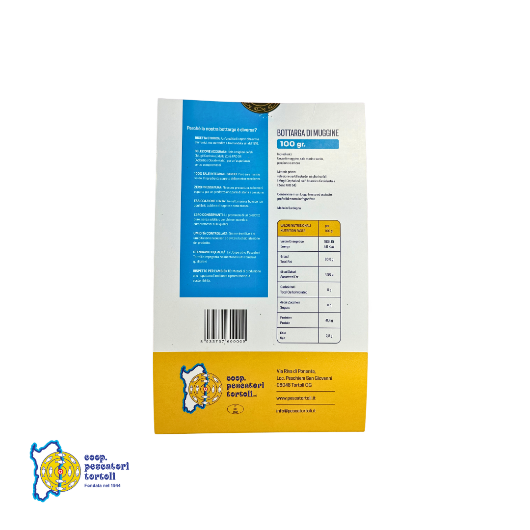 Ottenuta dai migliori cefali dell'Atlantico Occidentale, la nostra Bottarga di Muggine grattugiata è sinonimo di qualità superiore. La selezione accurata e la lavorazione manuale, che include la pulizia, la salagione con sale marino sardo e un'attenta essiccazione, sono il segreto del suo sapore unico.